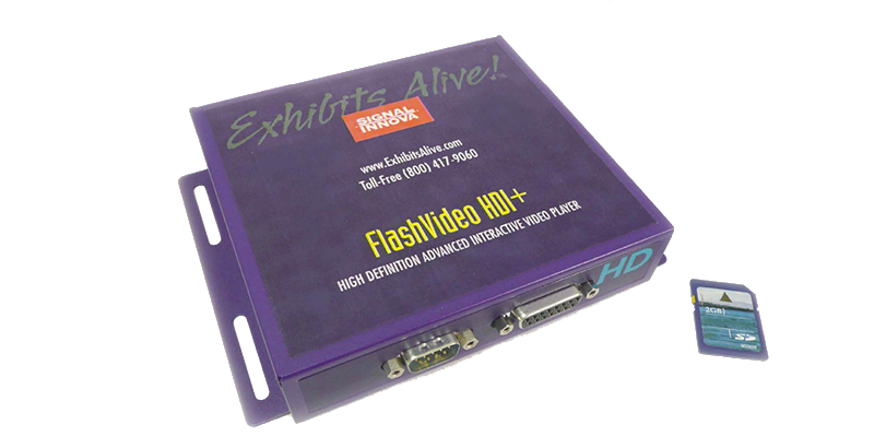 With our FlashVideo HDI+ Advanced Interactive Player upgrade, touchscreens and external controllers can also be incorporated. Using convenient Secure Digital memory cards for storing video segments, Signal-Innova’s FlashVideo HDI and HDI+ make it easy to update, interchange and replace HiDef videos.