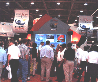 This time the call came from Mitchell International, San Diego, CA, a large publishing company providing a wide variety of products and services to the auto body repair industry. For an upcoming major annual trade show, Mitchell contracted with ExhibitGroup/Giltspur, Cypress, CA, to design and build an attractive, multi-faceted booth. To engage industry attendees and familiarize them with Mitchell’s products, the company’s director of marketing communications envisioned an exciting interactive game with Mitchell windbreakers and other giveaways as prizes.